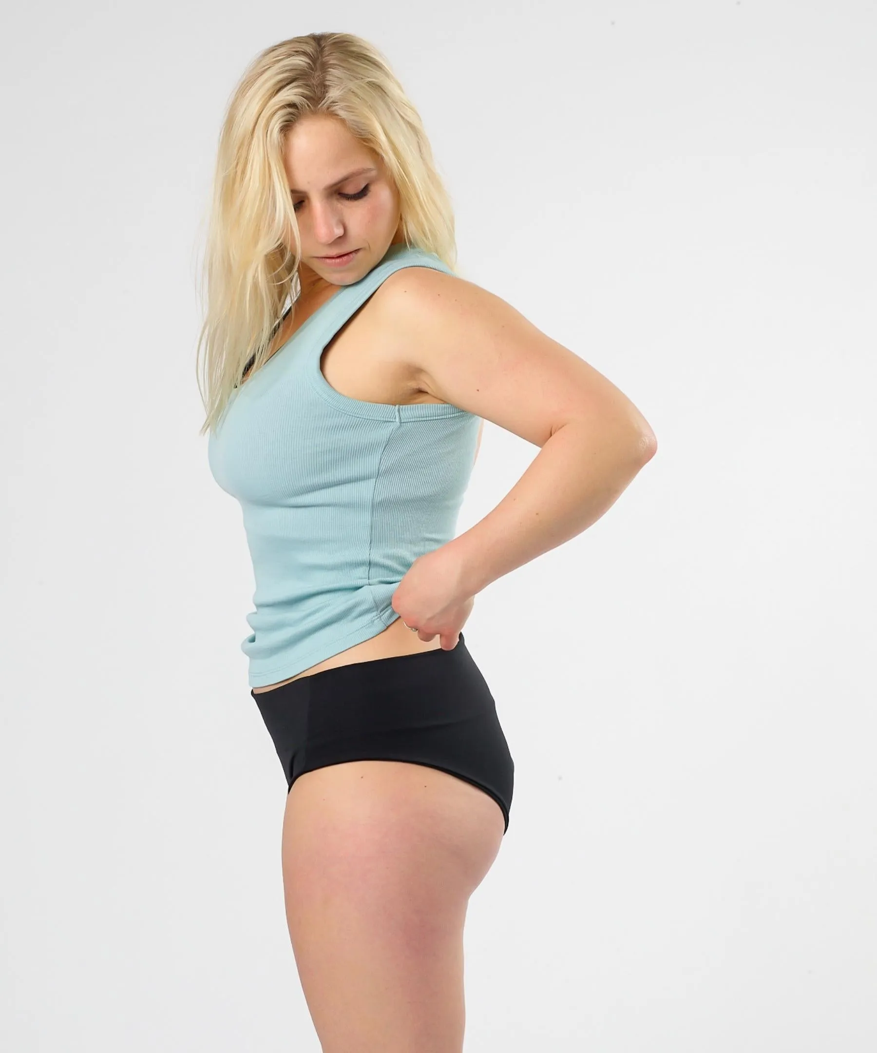 A 100% BCI organic cotton lining holds pads and period liners securely in place while providing a natural, moisture-wicking barrier against leaks and overflow — because real period underwear should account for your actual period. Cramps, leaks, bloating, and all the rest? C'est la VieWear.